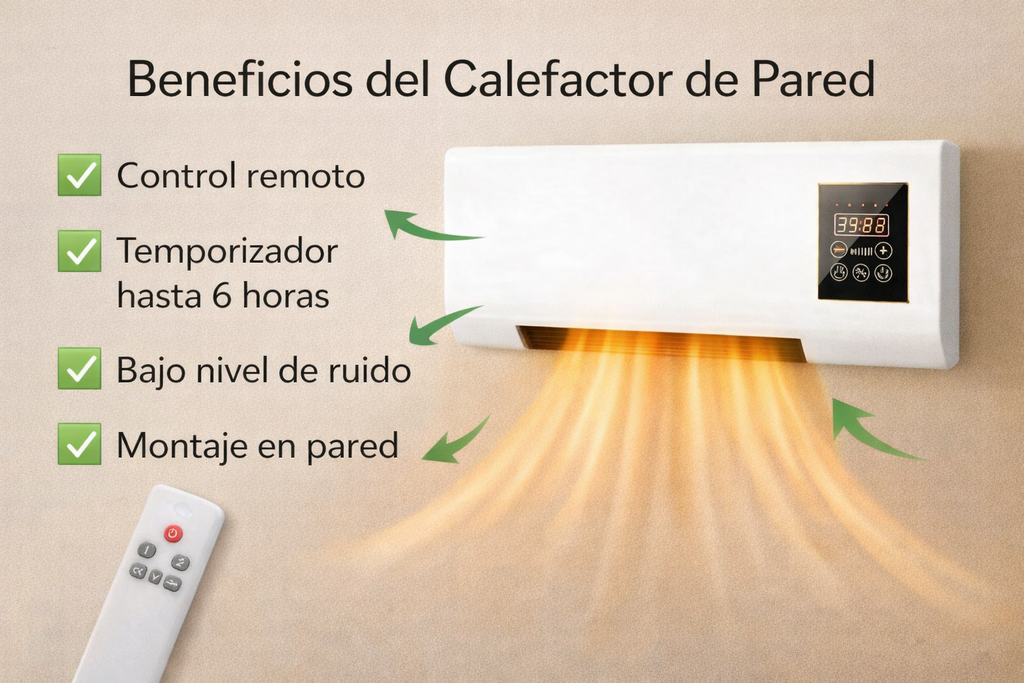 Calefactor de Pared Inteligente con Control Remoto y Temporizador