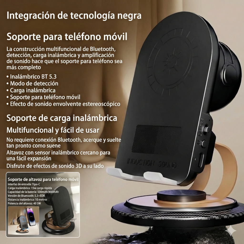 ⚡📱 Soporte Inalámbrico 5 en 1 con Sonido por Inducción